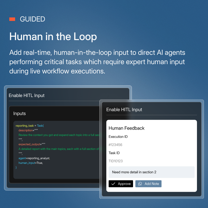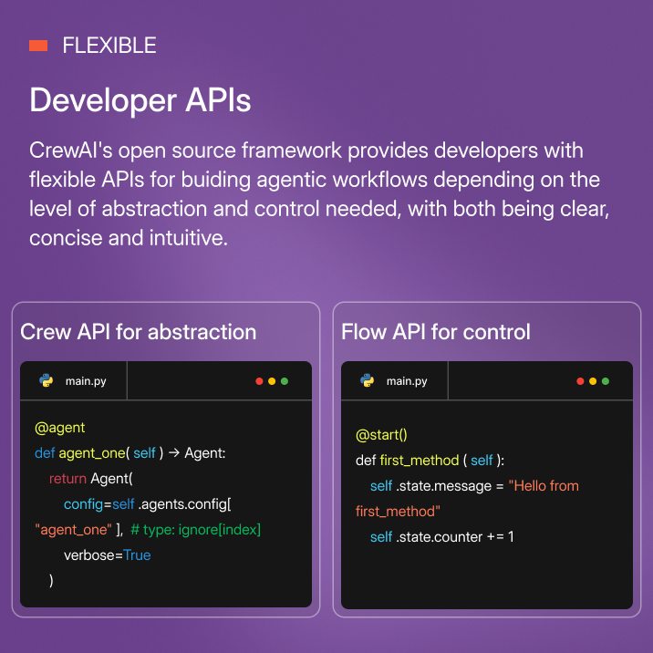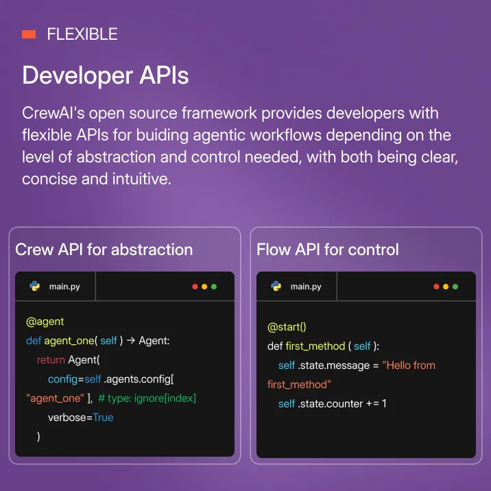 Build agentic workflows programmatically via APIs that provide greater control and customization.