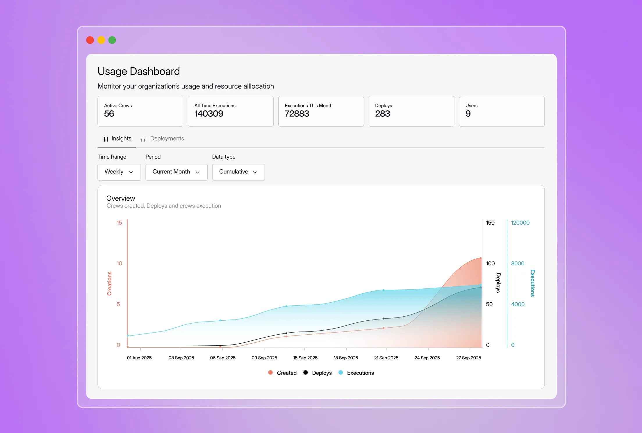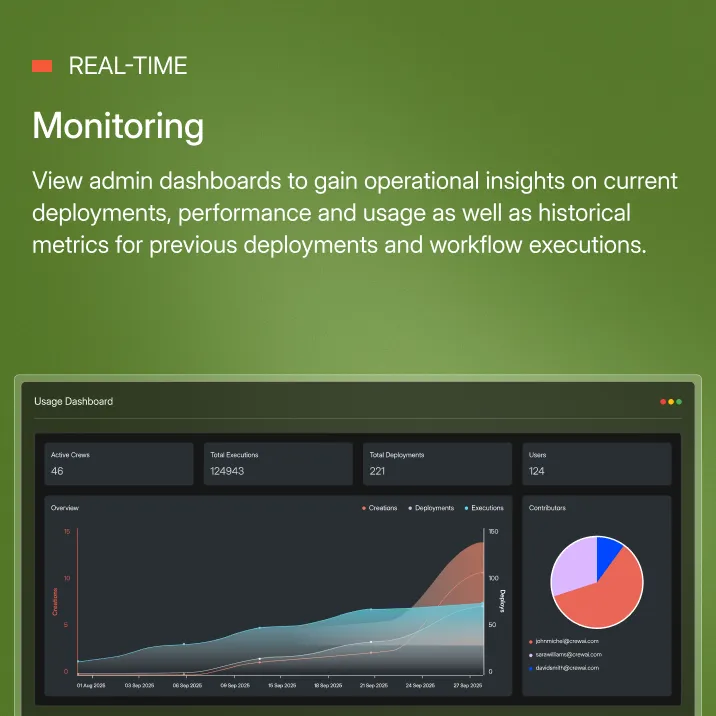 Monitor everyting from agentic workflows created, deployed and executed to performance and errors.