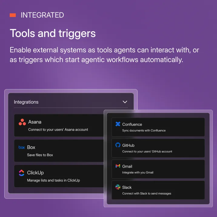 Provide AI agents with access to the tools and business apps they need to perform complex tasks.