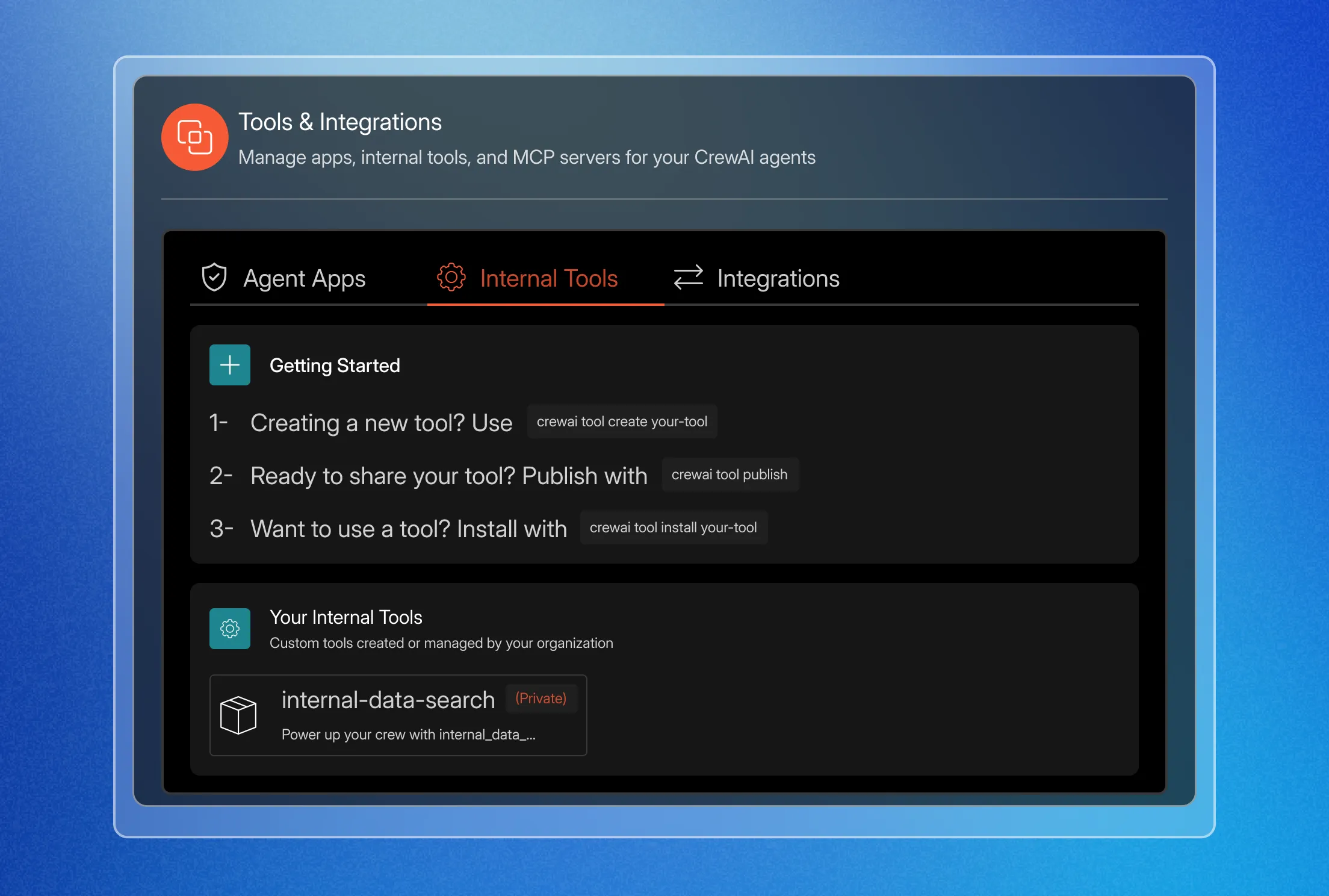 Create custom tools that allow AI agents to interact with internal, proprietary applications and systems.