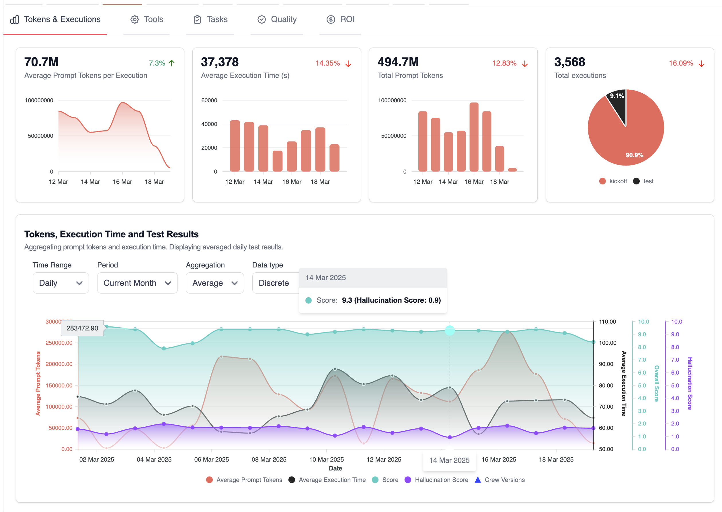 With our advanced observability tools and enterprise-grade metrics, CrewAI offers unparalleled transparency and control. Developers gain deep insights into agent behaviors, execution paths, and performance metrics, enabling rapid debugging and optimization, even at massive scale.